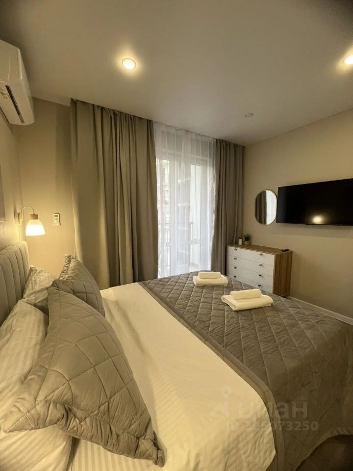 Расположенная на 7 этаже, квартира-студия Дрейф открывает просторный вид на Кавказские горы — без зданий на переднем плане, только зелень и небо. Светлая, только отремонтированная, с высокими потолками и продуманной планировкой, она идеально подходит для троих: пары с ребёнком или небольшой компании, ценящей тишину, свежий воздух и удобное расположение.