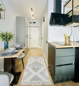В кухонной зоне: холодильник, микроволновка, варочная панель, чайник, необходимая посуда, столовые приборы и принадлежности