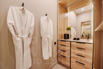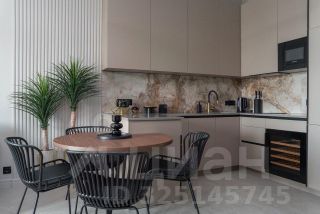 Полный набор премиальной бытовой техники на кухне. Есть и кофемашина, и винный шкаф, и посудомоечная машина. Много мест хранения.