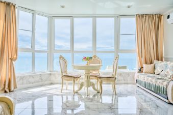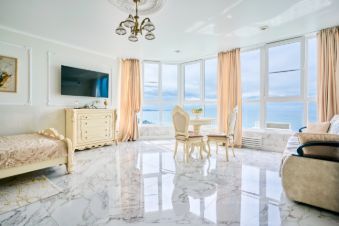 Эта квартира, недавно прошедшая евроремонт, обладает роскошным панорамным видом на море, который станет вашим источником вдохновения и радости.