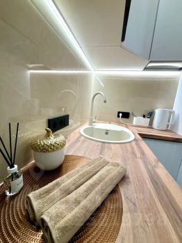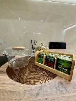 Новая студия с дизайнерским ремонтом, есть все необходимое для красивого и комфортного отдыха. Есть балкончик (нюансом является вид, он отсутствует).