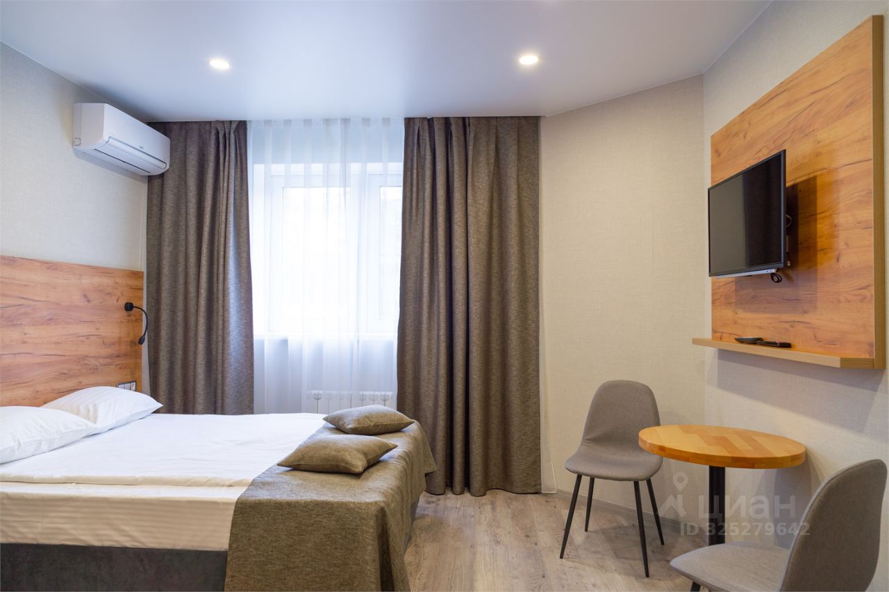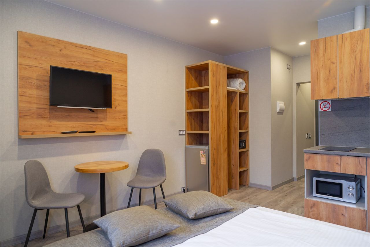 Уютные апартаменты площадью 26 кв.м. в выдержанных тонах с односпальной кроватью или двумя раздельными кроватями, для одно или двухместного размещения. Апартаменты оснащены кондиционером, телевизором с плоским экраном, в каждом апартаменте расположен современный кухонный гарнитур с мойкой, плитой, современной бесшумной вытяжкой, холодильником, СВЧ, электрическим чайником и посудой необходимой для комфортного проживания как на короткое время, так и длительный срок. Собственная ванная комната с душем укомплектована феном, стиральной машиной и туалетно-косметическими принадлежностями. Гладильная доска и утюг расположены в общей доступности (на этаже).