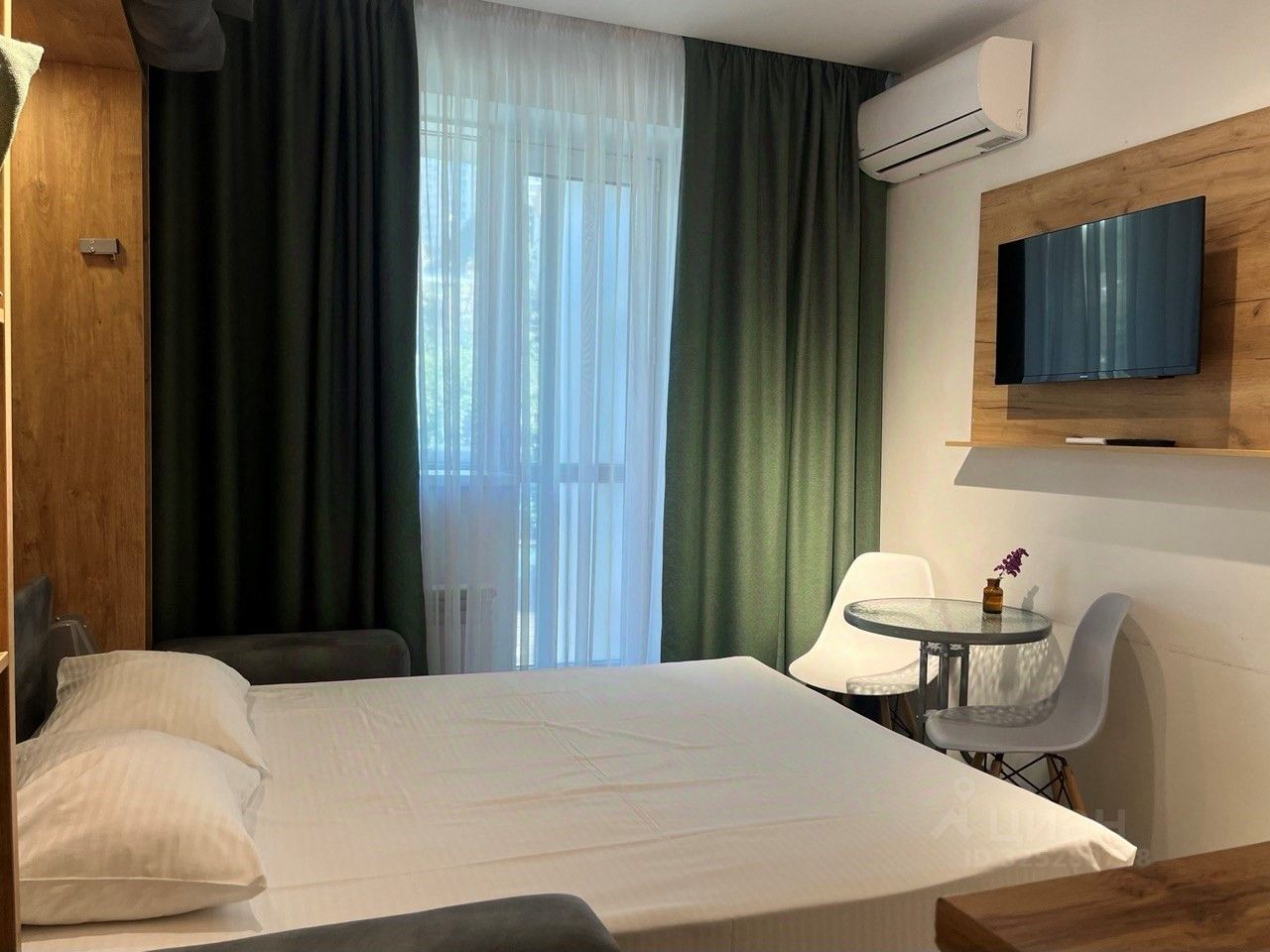 Уютные апартаменты площадью 16 кв.м. в выдержанных тонах, с двуспальной кроватью-трансформер для одно или двухместного размещения. Апартаменты оснащены кондиционером, телевизором с плоским экраном, в каждом апартаменте расположен современный кухонный гарнитур с мойкой, плитой, современной бесшумной вытяжкой, холодильником, СВЧ, электрическим чайником и посудой необходимой для комфортного проживания как на короткое время, так и длительный срок. Собственная ванная комната с душем укомплектована феном, стиральной машиной и туалетно-косметическими принадлежностями, стиральной. Гладильная доска и утюг расположены в общей доступности (на этаже).