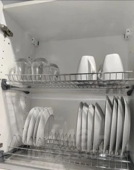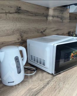 Есть все необходимое: духовка, микроволновка, варочная панель, посудомоечная машина, стиральная машинка, водонагреватель, гладильная доска, утюг, посуда.