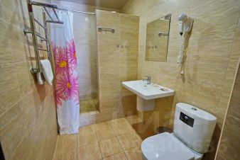 Оснащенность: шесть спальных мест, стол/комод, стул(ья), шкаф, прикроватные тумбочки, вешалки, зеркало, кондиционер, телевизор, постельное белье, полотенца, пледы, гигиенические наборы, кухня с необходимым инвентарем для приготовления пищи, чайник, микроволновка, мультиварка, холодильник, санузел, фен. Дополнительное место не входит в стоимость номера. Примечания к цене: Если в номере людей будет проживать больше, чем положено, нужно оплатить дополнительные места. Комнаты изолированные.