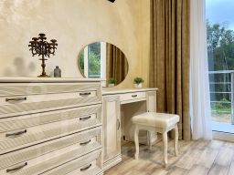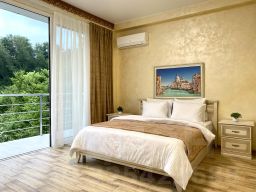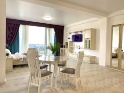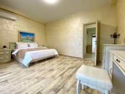Квартира оборудована всем необходимым для комфортного проживания: двуспальные кровати, диван, обеденная зона, кухня, собственная ванная комната и туалет, шкаф.