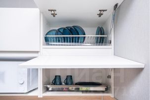 Полностью оборудованная кухня с посудой, утюгом, гладильной доской и феном.
