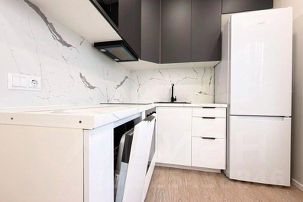 оснащение кухни: индукционная плита, холодильник, эл. чайник, микроволновка, духовка, посудомойка