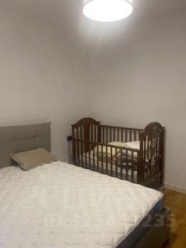 двухспальная кровать,детская кроватка,телевизор,застекленный балкон.