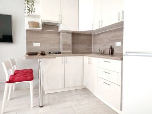 Необходимая бытовая техника и посуда (сплит-система, стиральная машина, чайник, свч, плита, холодильник, посуда для приготовления и сервировки, гладильные принадлежности, фен).