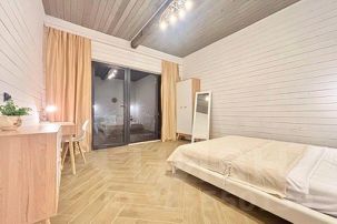 Современный дизайнерский интерьер с элементами дерева