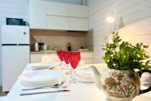 - полноценная оборудованная кухня гостиная с великолепным видом, просторным балконом и всем необходимым: чайник, плита, микроволновая печь, холодильник вся необходимая посуда