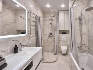- Санузел с просторной душевой кабиной и ванной, гигиеническим душем.