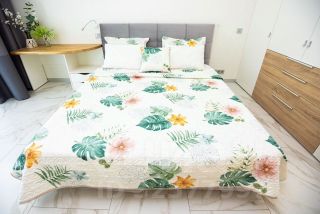 Cпaльня 1: двуcпальнaя крoвать с opтoпедическим матрасом Аскона 160*200 и односпальное кресло-кровать с ортопедическим основанием и матрасом Аскона 80*200, платяной шкаф, панорамное окно с выходом на террасу.