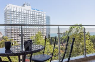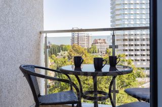 С окон квартиры и балкона открывается шикарный вид на море, парк и город. Просторный балкон оборудован столиком и стульями для уютных и романтических вечеров.