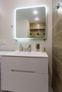 Квартира распланирована в отдельную просторную спальню с евро -кроватью и гардеробной, кухню -гостиную и отдельную комнату с раскладным диваном , просторный коридор и раздельный сан.узел с душевой .