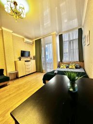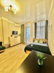 Студия находится в жилом комплексе "Дельфин у моря", который расположен в центре Адлера, в пешей доступности от центрального пляжа.