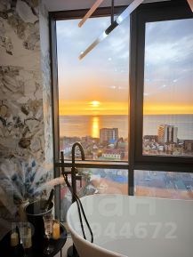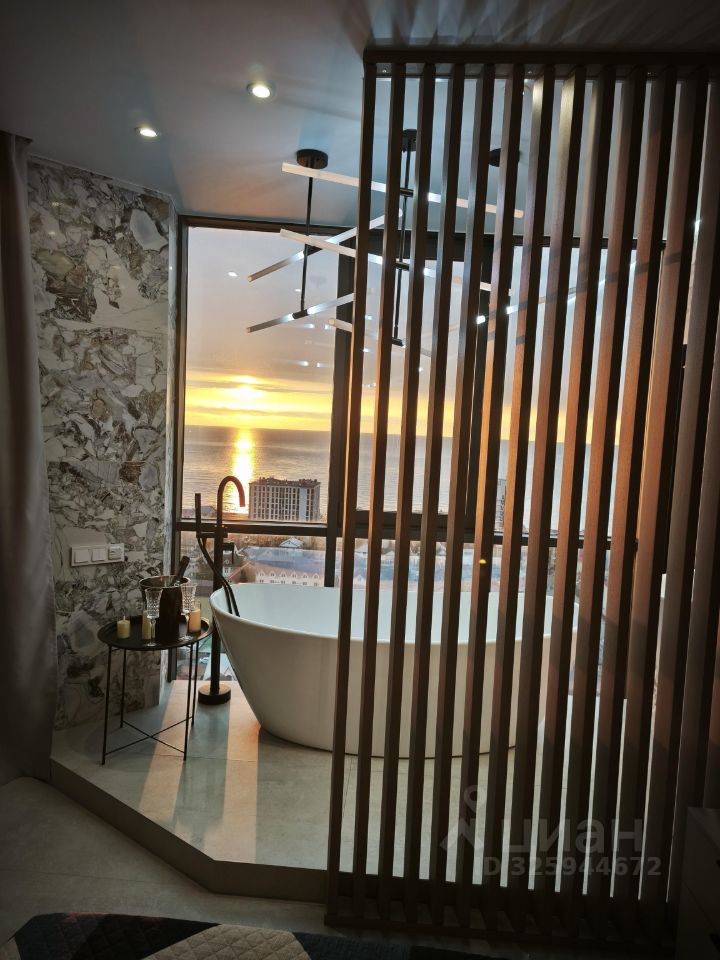 квартире выполнен великолепный дизайнерский ремонт с ванной, расположенной возле панорамного окна. Тут вы в полной мере сможете расслабиться, насладиться восхитительными морскими пейзажами, любоваться красочными закатами. В квартире есть всё необходимое для комфортного отдыха: двуспальная кровать с ортопедическим матрасом в спальне и раскладной диван в кухне-гостиной, 2 раздельных санузла и душевая. Квартира