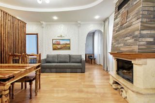 гостиная с камином и раскладным двуспальным диваном,