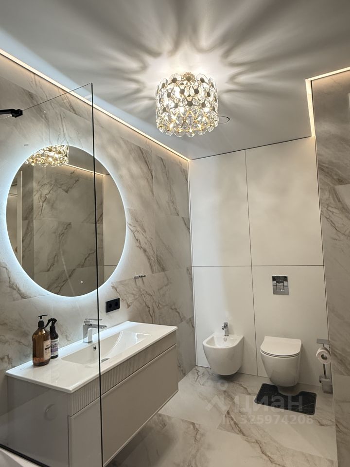 • Большая ванная комната: Просторная ванная комната оснащена современной сантехникой, включая унитаз и биде, что добавляет комфорта и гигиеничности.