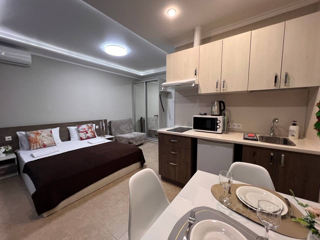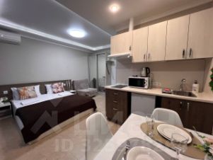 Сдаётся уютная студия с евроремонтом в тихом уголке по адресу Россия, Краснодарский край, Сочи, улица Ленина, 219А/1к1. Общая площадь апартаментов составляет 22 кв. м, из которых 20 кв. м — жилая зона, а кухня занимает 2 кв. м. Квартира расположена на 1 этаже 3-этажного дома.