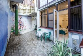 Планировка кваpтиpы: просторная студия с удобной двуспальной кроватью и двумя диванчиками. Оборудованная кухонная и обеденная зоны, сан узел с ванной и водонагревателем. Тёплый пол. За счёт удачной планировки в квартире всегда тихо, как за городом, хотя это самый центр Сочи.