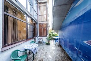 Квартира расположена на цокольном этаже .Окна выходят на тихую тупиковую улицу со своим двориком, где можно выйти на свежий воздух и посидеть за столиком. У жилого комплекса охраняемая территория, консьерж.