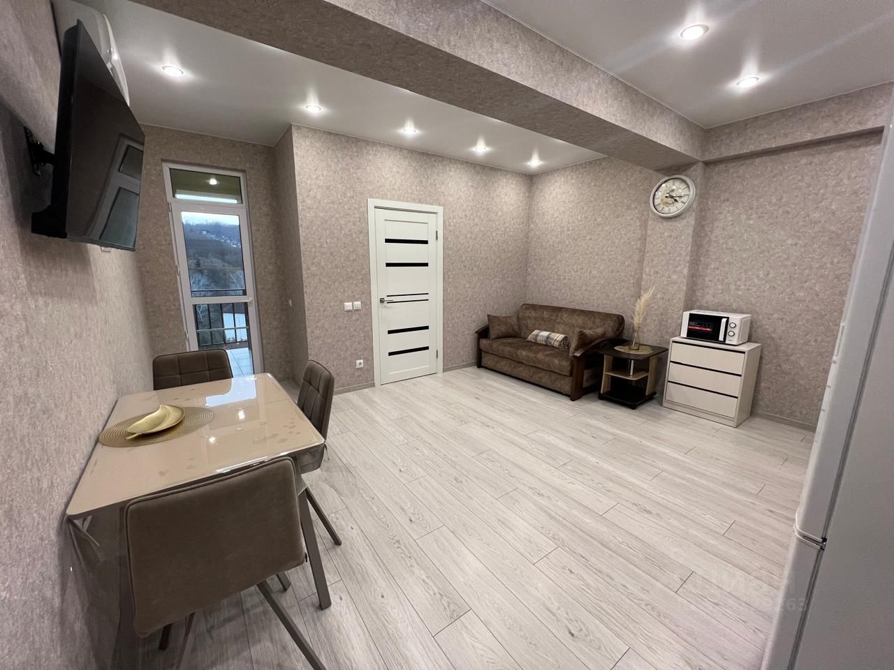 В квартире выполнен евроремонт, поэтому обстановка современная и стильная. В комнате и на кухне есть вся необходимая мебель для комфортного проживания. Для вашего удобства установлены кондиционер, холодильник, телевизор и стиральная машина. Ванная комната оборудована душевой кабиной и совмещена с санузлом. Из окон открывается вид на улицу, а на балконе можно наслаждаться свежим воздухом.