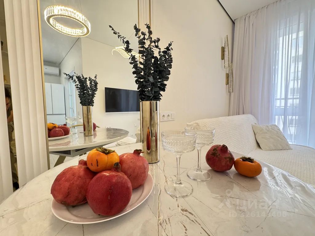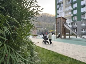"Студия + Спальня" в новом жилом комплексе "Флора" с закрытой территорией. Парковки, детские и спортивные площадки, зоны для отдыха. Рядом с домом променад у горной реки, шезлонги под навесами, зона ворк-аут, площадка для пляжного волейбола, до пляжа 1800 м.