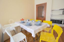 Кухня-студия: кухонный гарнитур с полным набором, обеденный стол, 6 стульев, эл. чайник, микроволновка с конвекцией, посудомоечная, варочная панель, холодильник, Wi-Fi, тв, кондиционер, диван-кровать 2-спальный, шкаф, стеллажи. Гостиная: 2 дивна (1 - раскладываемый 140*200), тахта, рабочий стол, журнальный стол, шкафы, тв. Спальня: двуспальная кровать 180*200, односпальная кровать (80*180), шкаф, балкон, косметический столик, пуф, 2 тумбы.