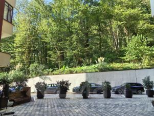 Так как дом граничит с национальным парком, есть отдельный выход к лесу, тропе здоровья "Терренкур", детской площадке и зоне барбекю.