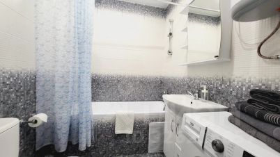 В квартире имеются все необходимые принадлежности для душа: полотенца, фен для волос. Также есть хозяйственные принадлежности: утюг, гладильная доска, пылесос.