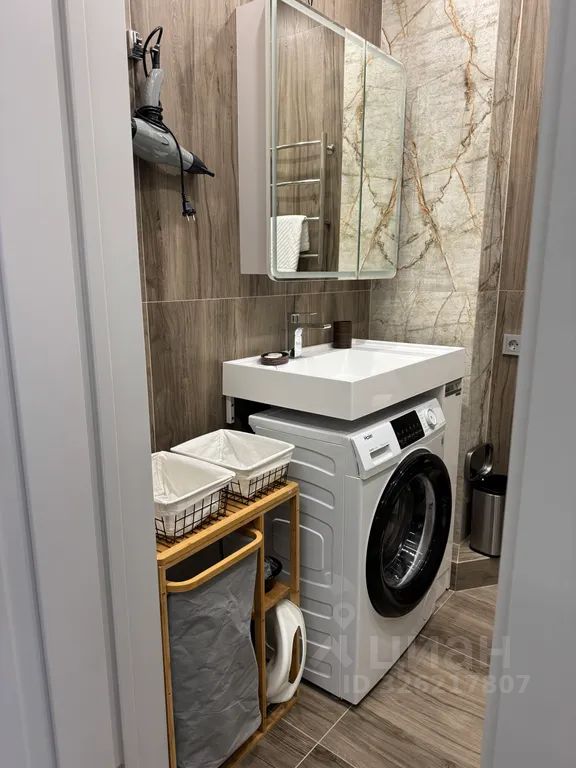 - санузел: стильный санузел с душевой кабиной, раковиной, зеркалом и феном.