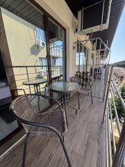 Апартаменты для двоих, где главное — это ваш комфорт и близость к морю. Всего 5 минут пешком через живописный парк — и вы на песчано-галечном пляже. А вашей визитной карточкой станет просторная терраса — самая большая в комплексе, идеальное место для романтических вечеров.