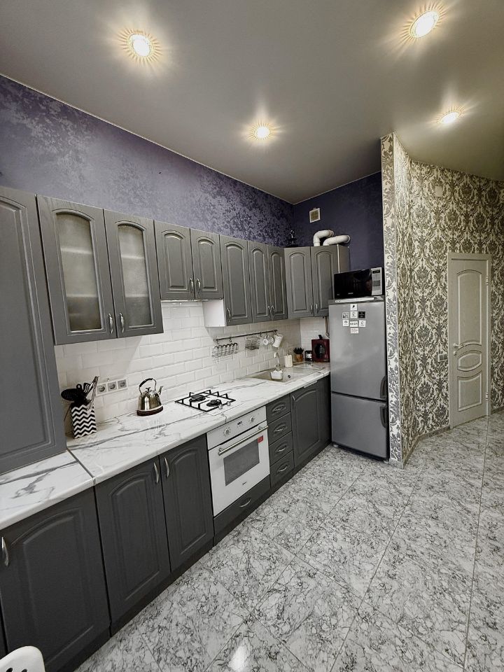 Бытовая техника: Холодильник, газовая плита с духовым шкафом, вытяжка, микроволновка, капсульная Кофемашина, стиральная машина-автомат, телевизор, Wi-Fi роутер.