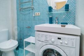 В ванной душевая, машина стиральная, фен, два шкафчика для принадлежностей, утюг, гладильная доска, сушилка. Кондиционер, вайфай, телевизор.