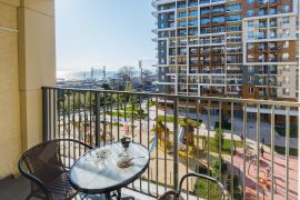 На балконе столик со стульями;
