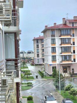 Очень классная, уютная квартира! Квартира площадью 50 кв. М, большая комната, отдельная кухня из которой выход на большую жилую лоджию, все как на фото (Евродвушка). Место просто супер! Вид из окна на Сочи -парк, озеро, даже видно олимпийский факел и фишт! До моря пешком 3-4 минуты!