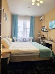Площадь 24 кв. М, в студии комфортно могут разместиться до 3 человек.