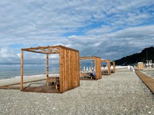 Частный пляж (шезлонги, зонтики, кафе, душ, туалет, раздевалка)!