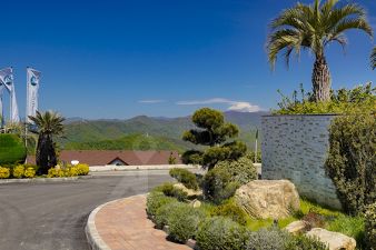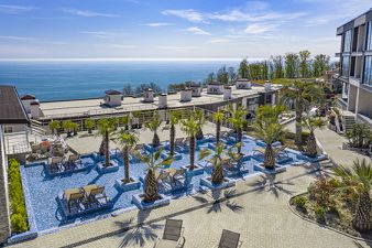 - Территория для прогулок с тропическими растениями, потрясающими видами на море и город