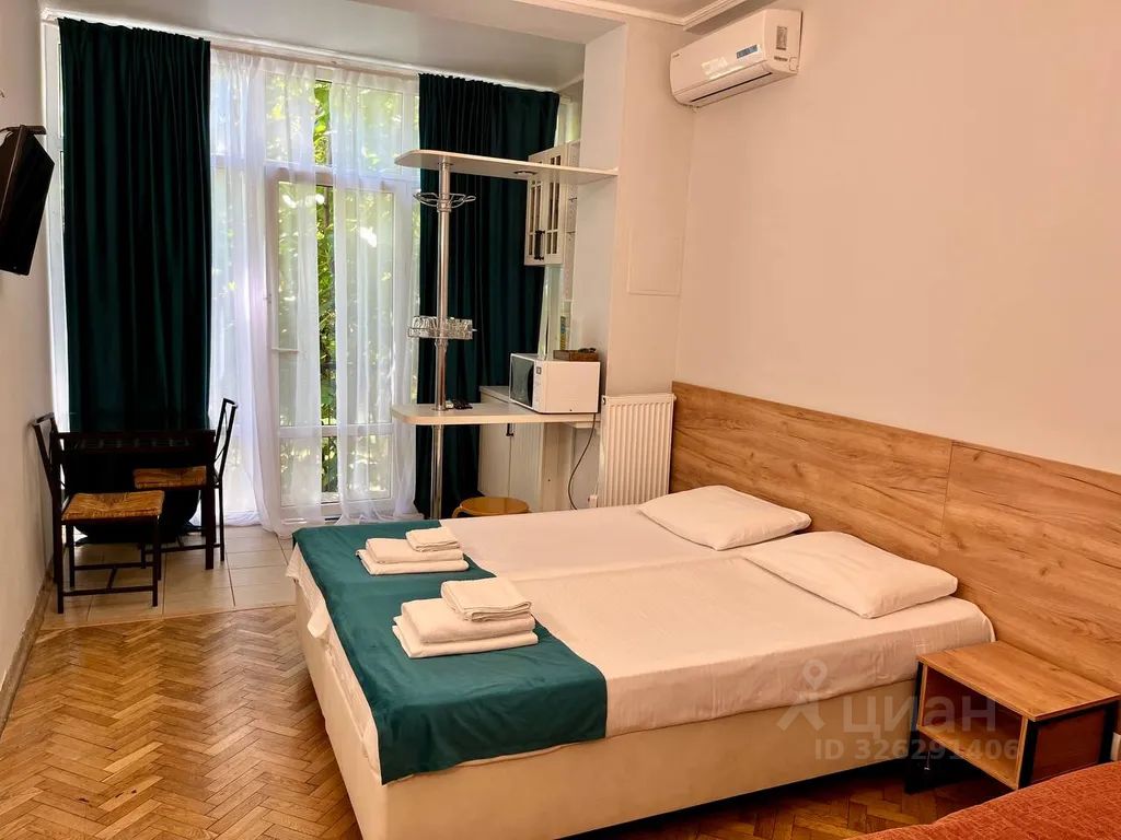 Апартаменты откуда открывается прекрасный вид на магнолиевый сад, отлично подойдет для размещения до 3 человек. Телевизор, фен, утюг, холодильник, чайник, микроволновая печь, кондиционер, сейф. Душевая и туалетная комнаты в номере. В стоимость номера входит парковка, wi-fi, банные принадлежности.