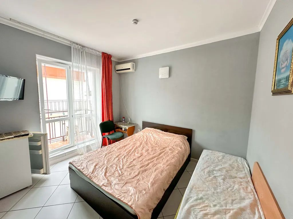 В комнате есть всё необходимое для комфортного проживания: кондиционер, холодильник для хранения продуктов, фен для сушки волос, телевизор, Wi-Fi.
