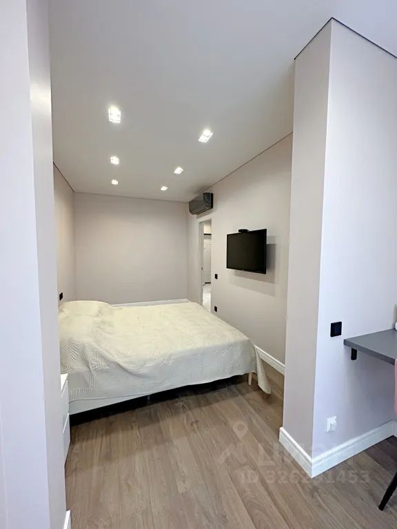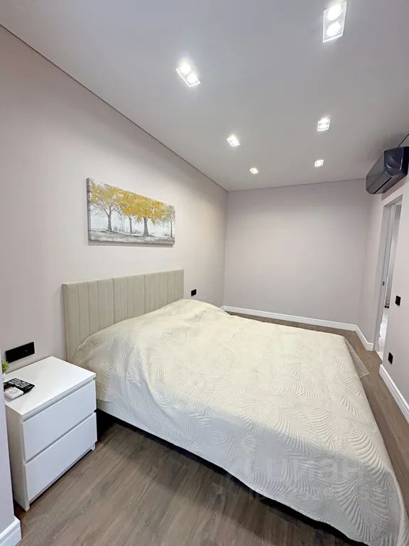 Спальня: двуспальная кровать, плазменный телевизор, прикроватная тумба, кондиционер.