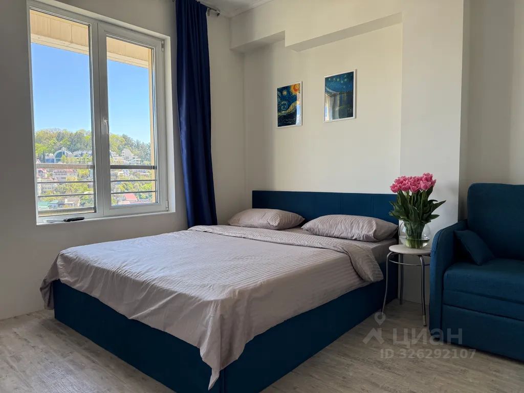 Сдается студия в Дагомысе (первая береговая линия). До моря 3 минуты пешком. Широкая береговая линия, чистое море, множество кафе баров, игровых площадок. Есть все необходимое для жизни. Магазины, остановка в шаговой доступности. До центра Сочи 15 минут на Ласточке (станция рядом), на маршрутке 20-25 минут. Охраняемая территория, есть детская и спортивная площадки, уличные тренажеры.