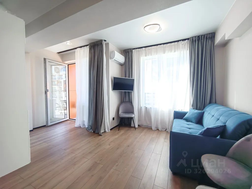 Сдается уютная, светлая студия в Дагомысе (первая береговая линия, вид из окна на море). До моря 3 минуты пешком. Широкая береговая линия, чистое море, множество кафе баров, игровых площадок. Есть все необходимое для жизни. Магазины, остановка в шаговой доступности. До центра Сочи 15 минут на Ласточке (станция рядом), на маршрутке 20-25 минут. Охраняемая территория, есть детская и спортивная площадки, уличные тренажеры.