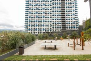 У нас безопасно: дом на закрытой территории с видеонаблюдением и охраной, а во дворе- большое разнообразие детских и спортивных площадок: площадки для воркаута, баскетбола, футбола, настольного тенниса, скейтпарк, зоны отдыха, в т.ч. с мангалом, лежаки с видом на горы.