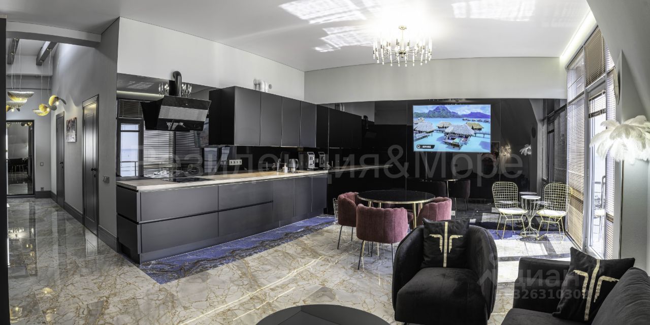 Потрясающий пентхаус с панорамным видом на море! Высокие потолки, витражные окна и абсолютно новый, качественный ремонт! Квартира распланирована в 2 спальни, в хозяйской спальне окно с видом на море и санузел. В детской две раздельные кровати и рабочая зона, окна с электроприводом расположены наверху. В просторной гостиной выход на балкон, кухонная зона оборудована всем необходимым включаю кофе машину, духовку, посудомоечную машину и микроволновку.