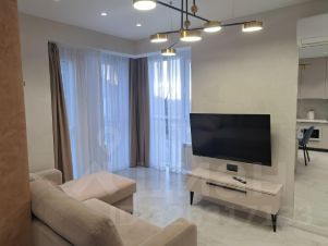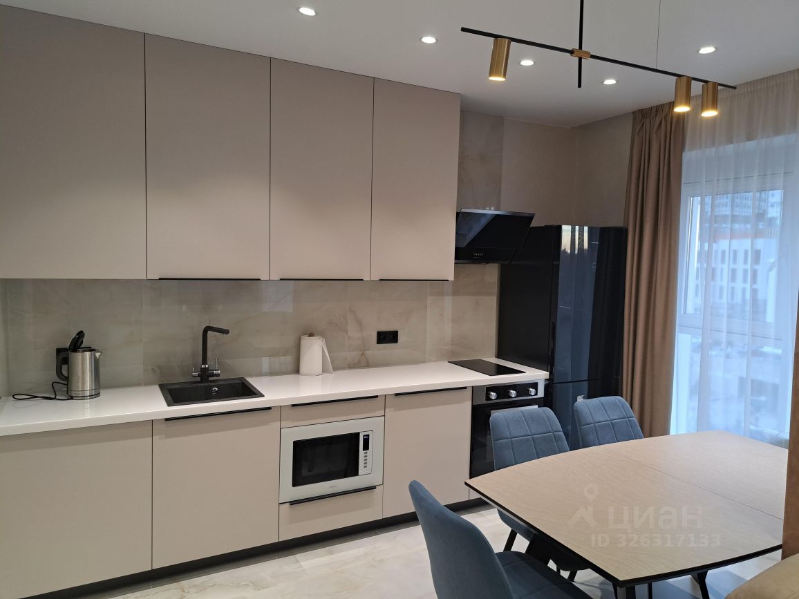 Грамотная планировка квартиры с удобной выделенной обеденной зоной и гостиной. Кухня оборудована духовым шкафом, посудомоечной машиной, микроволновой печью.