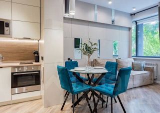 Удобный вариант для отдыха семьёй или компанией до 4 человек. Светлые апартаменты с отдельной спальней и кухней-гостиной, где есть всё необходимое для комфортного проживания.